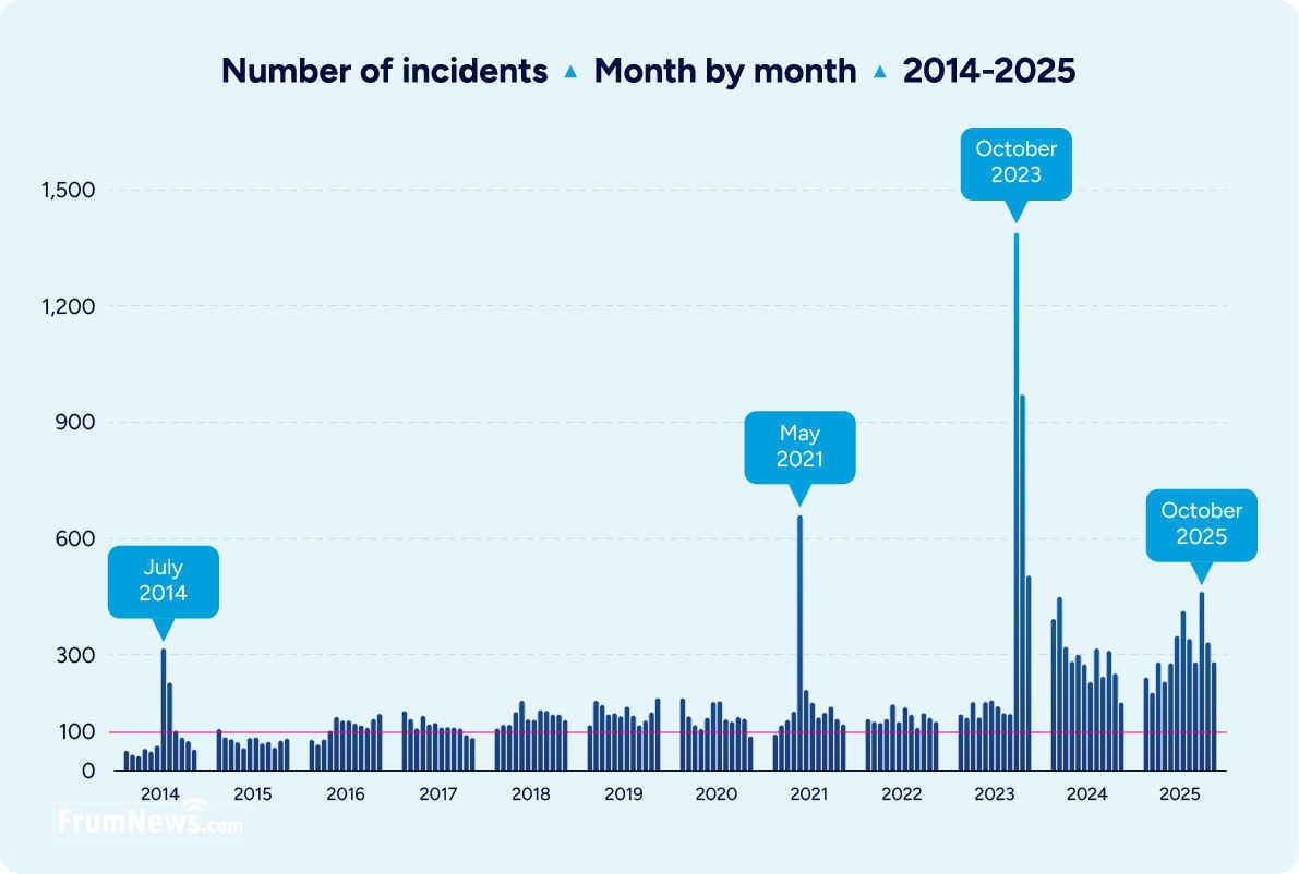 The terror attack in Manchester triggered an immediate spike in anti-Semitism, CST stated. It recorded 40 anti-Semitic incidents on 2 October, the day of the attack, and another 40 the following day, 3 October. These were the two highest daily totals for anti-Semitic incidents in 2025. In the week preceding the attack, CST recorded 64 cases of anti-Jewish hate.