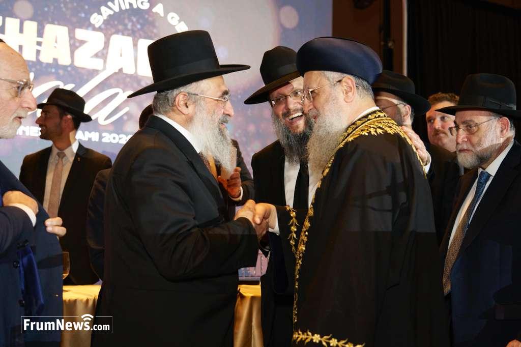 The highlight of the evening was the arrival of the Chief Rabbi of Israel, the Rishon LeTzion HaRav David Yosef, whose presence elevated the event to historic significance. The entire ballroom rose in a standing ovation as the Chief Rabbi entered, accompanied by security, in a powerful display of honor and respect.