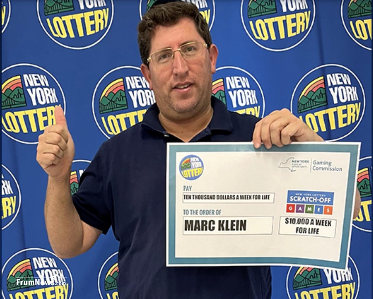 Marc Klein, a frum resident of Brooklyn has claimed a top prize on the New York Lottery’s $10,000 A Week For Life scratch-off game.
